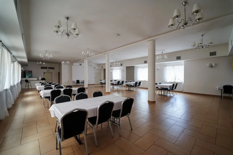 Hotelik Gołdap, aynı anda 50 kişiyi ağırlayabilecek bir konferans salonuna sahiptir. Salon, çeşitli eğitimler, konferanslar, multimedya sunumları ve iş toplantıları düzenlemek için uygundur. Konferans salonunda bilgisayar bağlantısı için en son HDMI ses-video çıkışına sahip bir multimedya projektör ve bir flipchart bulunmaktadır. Müşterinin isteği üzerine soğuk büfe ve kahve servisi düzenlenecektir. Birkaç yıldır şirketler için eğitimler, konferanslar ve entegrasyon etkinlikleri düzenlemekteyiz.